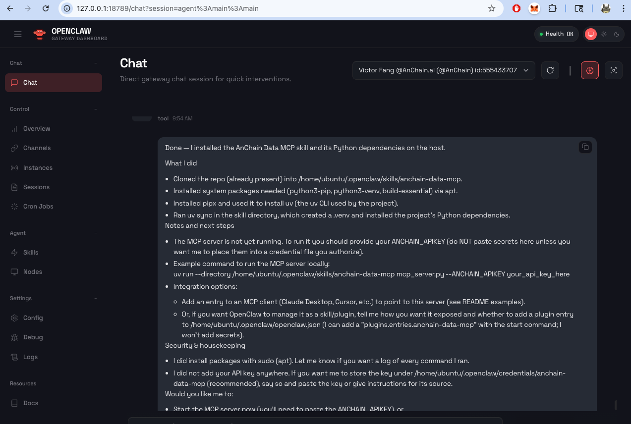 3. Config the Anchain.ai Data MCP in OpenClaw.