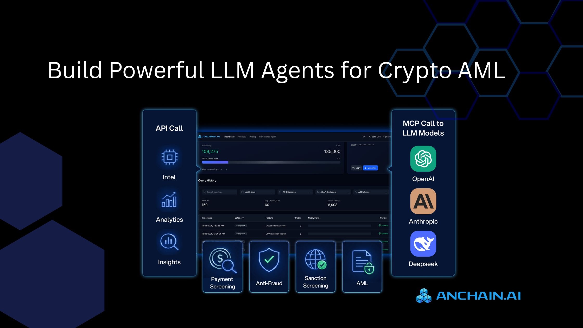 AnChain.AI provides comprehensive blockchain intelligence and compliance solutions. Our MCP servers enable seamless integration of blockchain analytics into any investigation or AML compliance workflow.