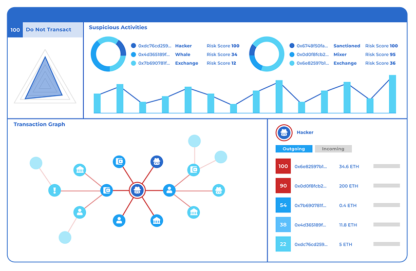 Use AI-powered scoring across blockchains to uncover suspicious transactions and linked entities. Evaluate wallet risk through clustering, on-chain behavior, and cross-chain intelligence to focus on what matters most.